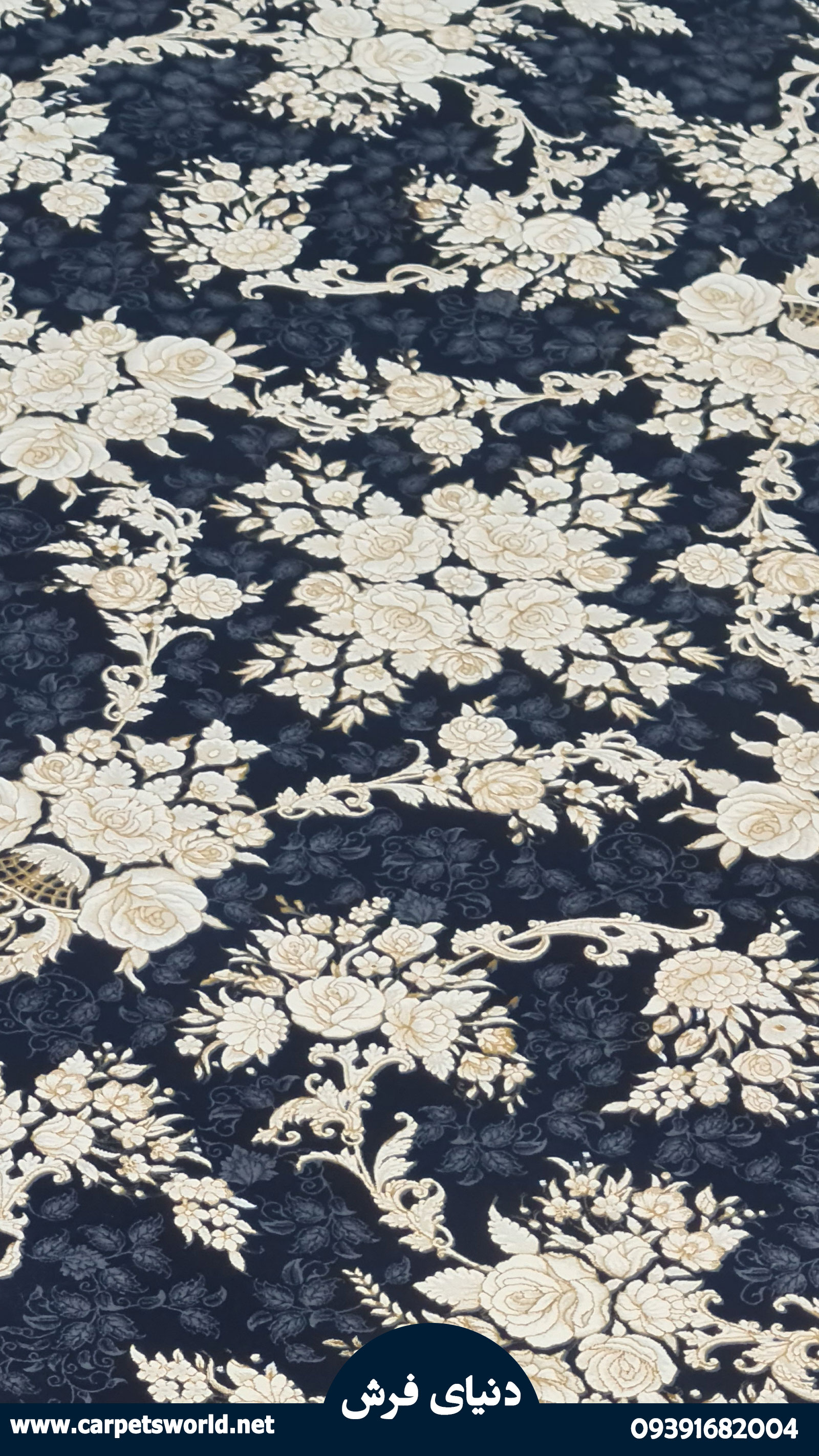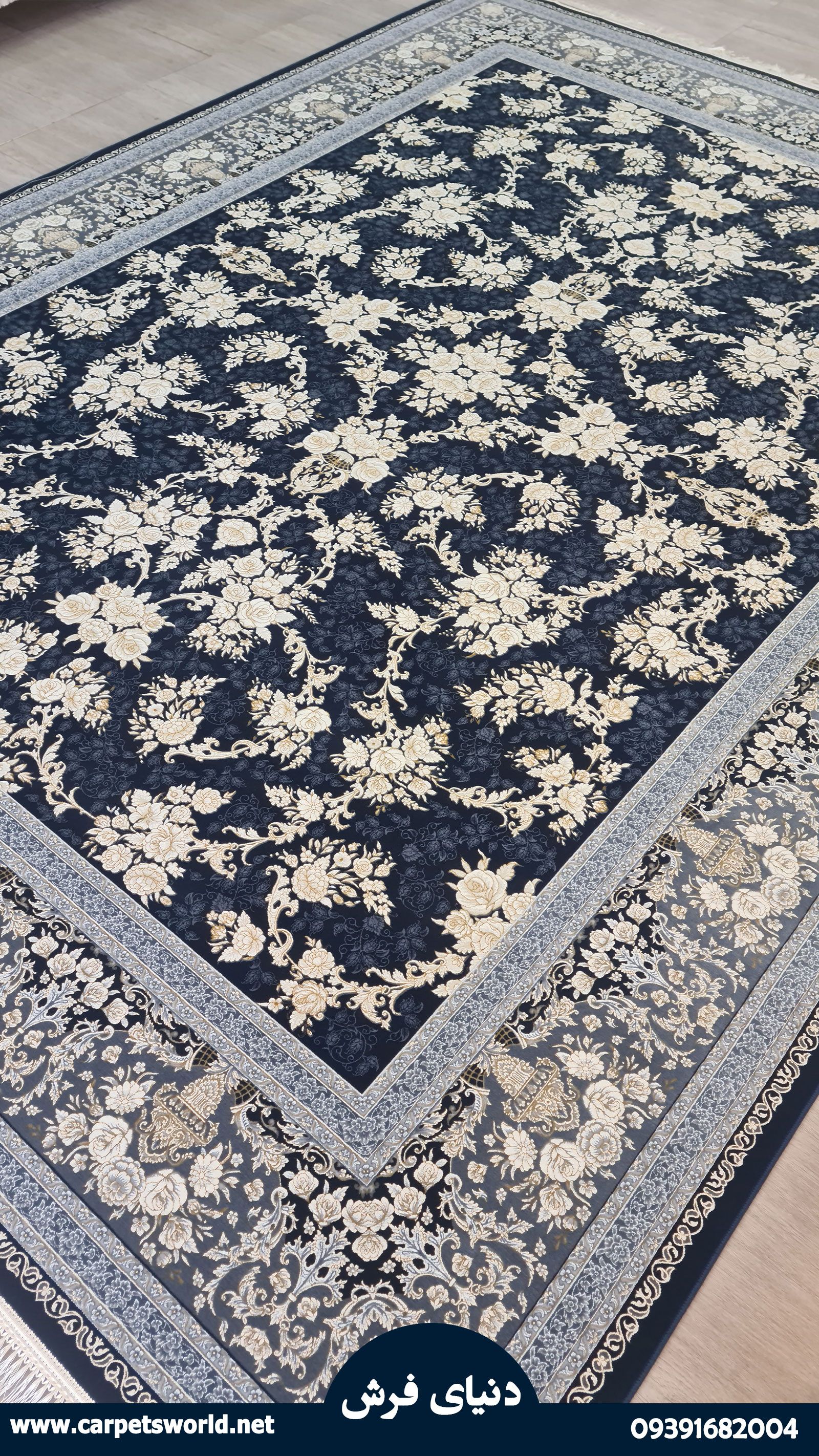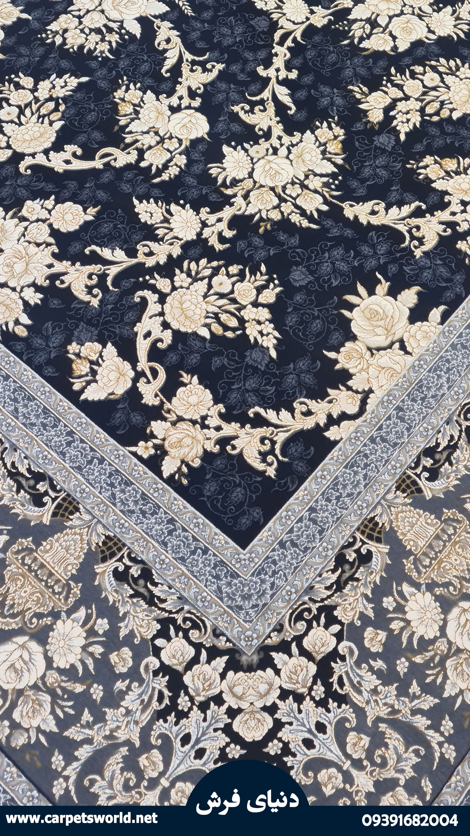 فرش طلا سرمه ای ۱۲۰۰ شانه گل برجسته